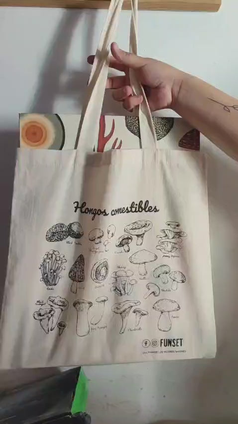 Bolsa multiusos eco-friendly colección hongos comestibles, el regalo ideal para los amantes de los hongos, regalo de cumpleaños, úsala como bolsa de biblioteca etc.